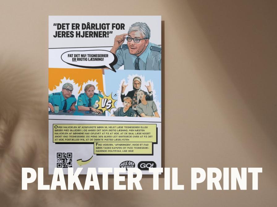 Her på siden finder du eksempler på og link til forskellige grafikker til print og digitalt brug i forbindelse med kampagnen "Tegneserier ER læsning!". Kampagnen kører fra uge 35 og må sættes op frem til d. 1. december 2025.